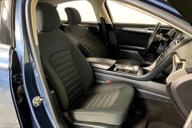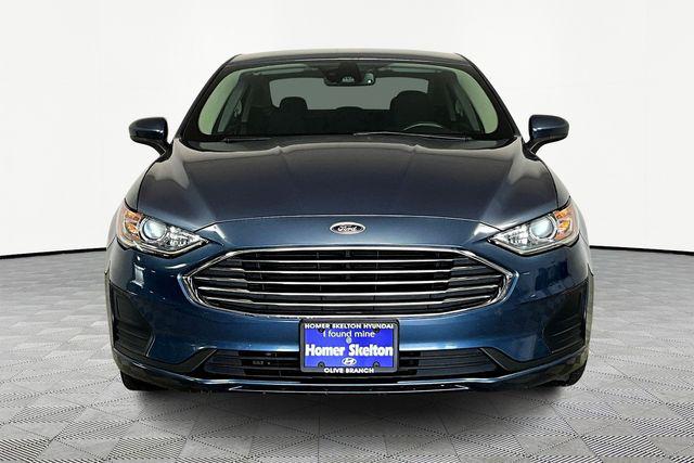 Clean CARFAX. Velocity Blue Metallic 2019 Ford Fusion Hybrid SE FWD eCVT I4 HybridHomer Skelton is committed to meeting your automotive needs with speed flexibility and friendly customer service. 43/41 City/Highway MPGEquipment Group 550A Fusion Hybrid SE I4 Hybrid FWD AppLink/Apple CarPlay and Android Auto Exterior Parking Camera Rear Fully automatic headlights Lane Departure Warning System Navigation System Rear Parking Sensors Security system Speed control Telescoping steering wheel Tilt steering wheel Wheels: 17"" Sparkle Silver-Painted Aluminum 4-Wheel Disc Brakes 9 Speakers ABS brakes Air Conditioning AM/FM radio: SiriusXM Auto High-beam Headlights Auto-dimming Rear-View mirror Automatic temperature control Brake assist Bumpers: body-color Cloth Front Bucket Seats Compass Delay-off headlights Driver door bin Driver vanity mirror Dual front impact airbags Dual front side impact airbags Electronic Stability Control Emergency communication system: 911 Assist Four wheel independent suspension Front anti-roll bar Front Bucket Seats Front Center Armrest Front dual zone A/C Front reading lights Illuminated entry Knee airbag Low tire pressure warning Occupant sensing airbag Outside temperature display Overhead airbag Overhead console Panic alarm Passenger door bin Passenger vanity mirror Power door mirrors Power driver seat Power passenger seat Power steering Power windows Radio data system Radio: AM/FM/MP3 Stereo Rain sensing wipers Rear anti-roll bar Rear reading lights Rear seat center armrest Rear window defroster Remote keyless entry Speed-sensing steering Speed-Sensitive Wipers Split folding rear seat Steering wheel mounted audio controls SYNC 3 Communications & Entertainment System Tachometer Traction control Trip computer and Variably intermittent wipers.