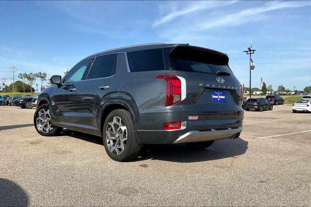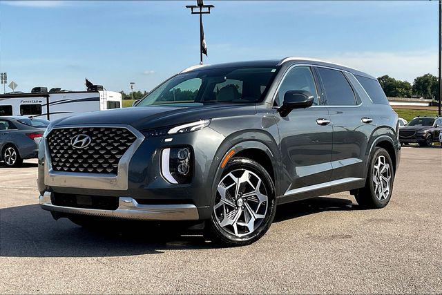 CARFAX One-Owner. Clean CARFAX. Steel Graphite 2022 Hyundai Palisade Calligraphy FWD 8-Speed Automatic with SHIFTRONIC V6Homer Skelton is committed to meeting your automotive needs with speed flexibility and friendly customer service. 19/26 City/Highway MPGOption Group 01 Navigation System Power moonroof Wheels: 20"" x 7.5J Calligraphy Exclusive Alloy 12 Speakers 3.648 Axle Ratio 3rd row seats: split-bench 4-Wheel Disc Brakes ABS brakes Air Conditioning Alloy wheels AM/FM radio: SiriusXM Apple CarPlay & Android Auto Auto High-beam Headlights Auto-dimming Rear-View mirror Auto-leveling suspension Automatic temperature control Brake assist Bumpers: body-color Cargo Cover/Screen Cargo Net Cargo Tray Carpeted Floor Mats Compass Delay-off headlights Driver door bin Driver vanity mirror Dual front impact airbags Dual front side impact airbags Electronic Stability Control Emergency communication system: Blue Link Connected Car Service (3-year complimentary subscription) Four wheel independent suspension Front anti-roll bar Front Bucket Seats Front Center Armrest Front dual zone A/C Front reading lights Fully automatic headlights Garage door transmitter: HomeLink harman/kardon Speakers Heads-Up Display Heated & Ventilated Front Bucket Seats Heated door mirrors Heated front seats Heated rear seats Heated steering wheel Illuminated entry Knee airbag Low tire pressure warning Memory seat Mudguards Occupant sensing airbag Outside temperature display Overhead airbag Overhead console Panic alarm Passenger door bin Passenger vanity mirror Power door mirrors Power driver seat Power Liftgate Power passenger seat Power steering Power windows Premium Nappa Leather Seat Trim Radio data system Radio: AM/FM/MP3 Premium Audio System Rain sensing wipers Rear air conditioning Rear anti-roll bar Rear audio controls Rear reading lights Rear window defroster Rear window wiper Reclining 3rd row seat Remote keyless entry Roof rack: rails only Security system Speed control Speed-sensing steering Split folding rear seat Spoiler Steering wheel mounted audio controls Sun blinds Tachometer Telescoping steering wheel Tilt steering wheel Traction control Trip computer Turn signal indicator mirrors Variably intermittent wipers Ventilated front seats and Ventilated rear seats.